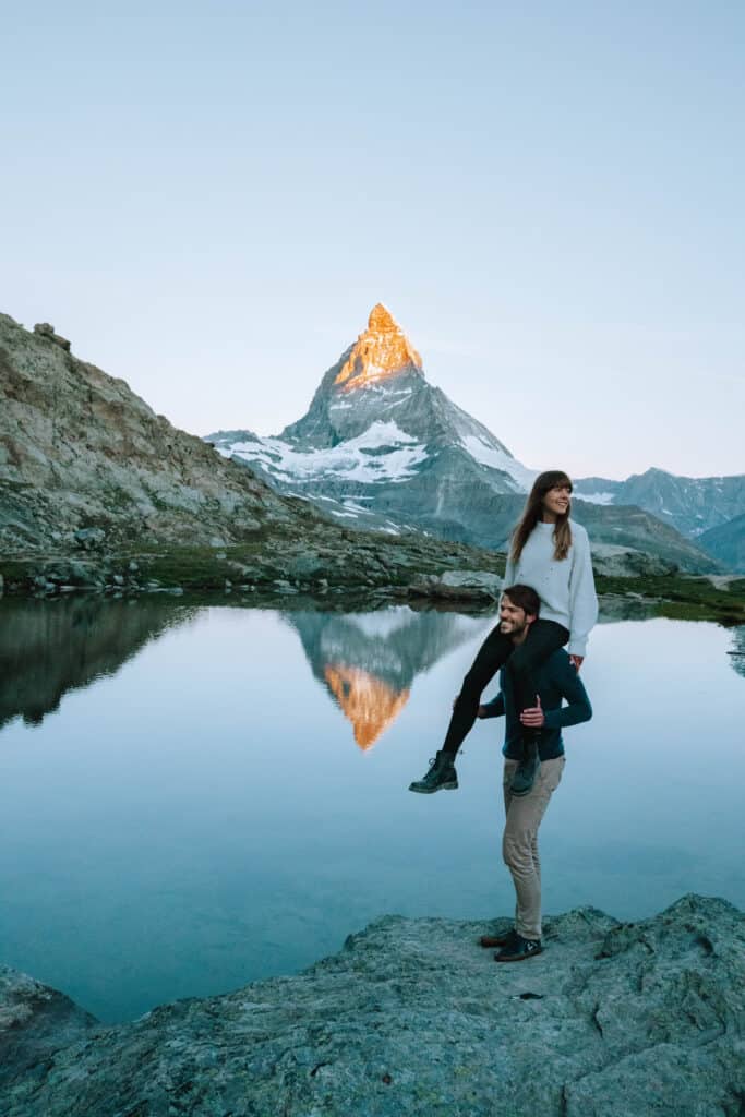The best hike for us and truly an unforgettable experience was our sunrise hike up to the Riffle Alp in Zermatt. The first day after we arrived in Zermatt, we took the Gondola up to Blauherd and hiked the 5 lakes trail, one of Switzerland’s most panoramic hikes.